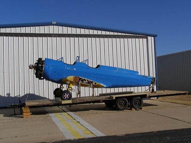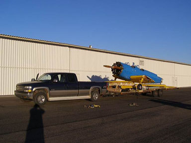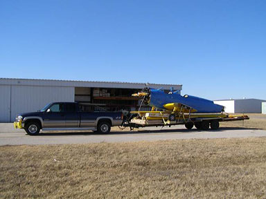 We worked till 11:00 Saturday night getting her disassembled, loaded, and tied down….this pic was taken after we got the parts loaded. One thing that really made me realize how much I like airplane people was a guy named Dave….He stopped by to see what was going on and I needed a few tools I had neglected to bring. Dave went down to his hangar, rolled his big toolbox back, and helped us for almost 6 hours. What a great guy. Had he not helped us, we would have had to complete the disassembly and loading on Sunday and been even further behind….