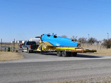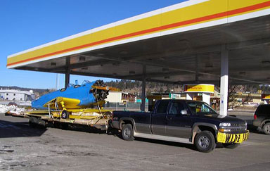 Much thanks goes out to everyone who sent along their best wishes for us and prayers that were said along the way. The only glitch we had was getting stopped after we sailed past a commercial truck check point and were pulled over by a policeman stationed there a few miles down the road….He walked up to the window and the first thing he said was “Don’t ya think it would have been easier to fly it home?”!!!!!! We laughed so hard….I should have told him we were flying IFR!!!! He was an airplane guy and after checking our wide load permit and noting we were not a commercial run, he let us go!