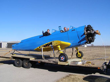 Still have to crane the fuselage off the trailer but she is home….Mark is in the back and my brother is in the front!